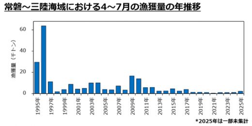 常磐~三陸海域における4~7月の漁獲量の年推移 (スルメイカ全系群の資源評価に関する意見交換水産機構資料より引用)